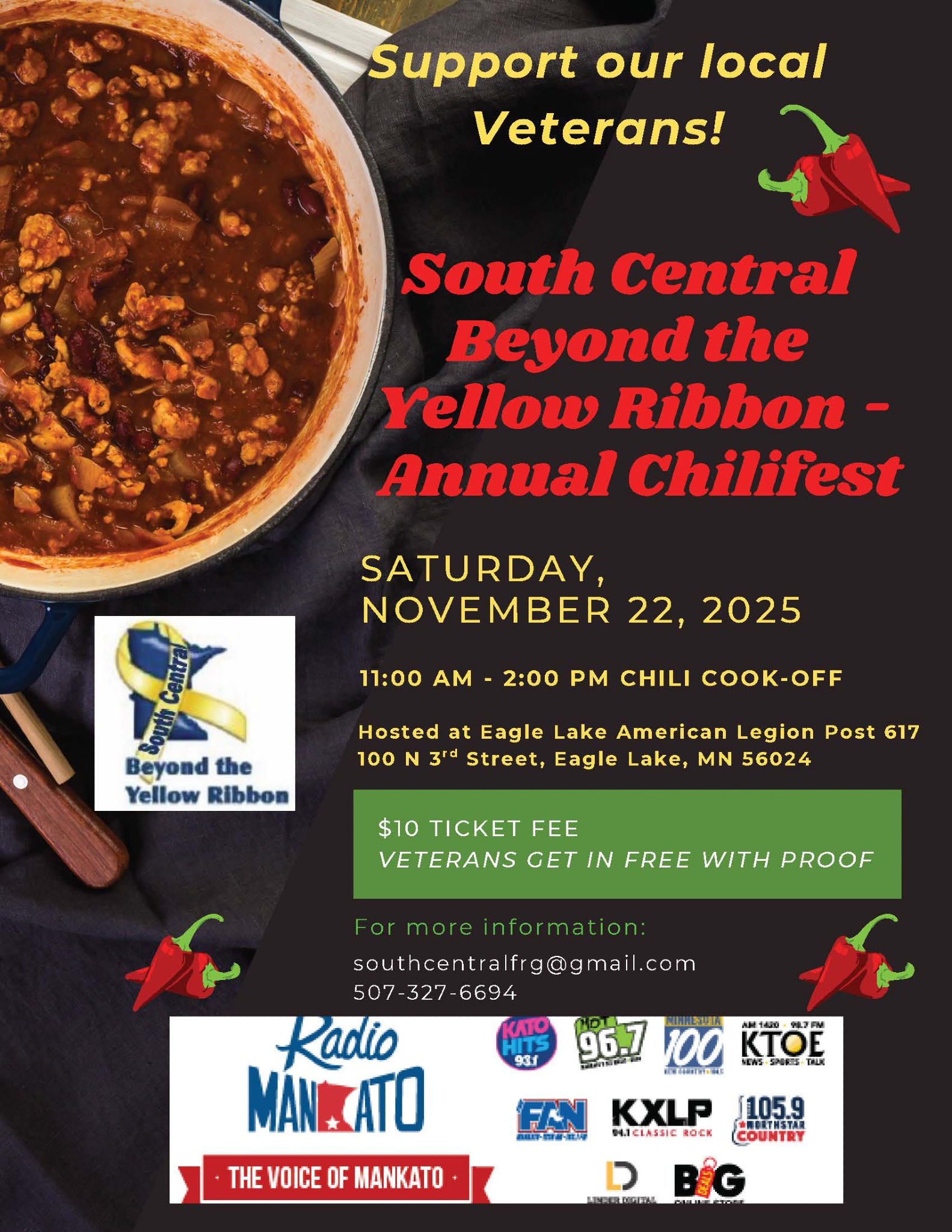 Lorraine Little returns with South Central Beyond The Yellow Ribbon. It’s your invite to Chilifest 2025!! This Saturday in Eagle Lake.