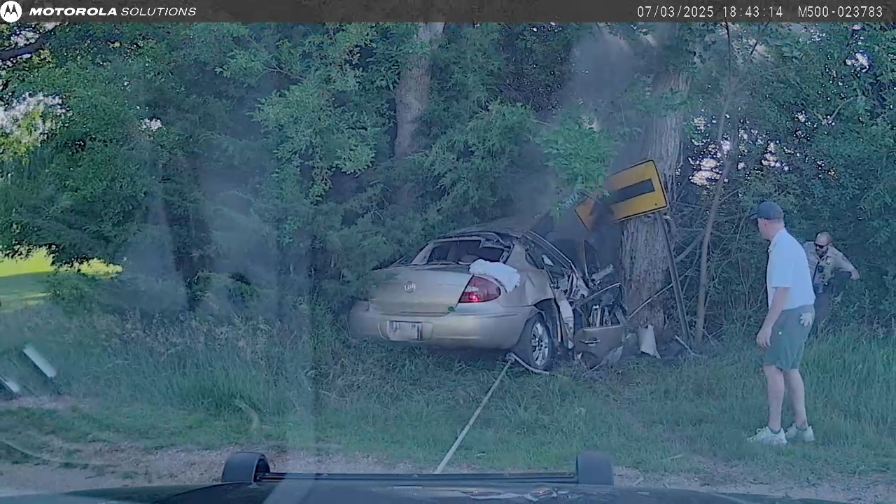 On July 3rd at 6:33 pm deputies responded to a single-vehicle crash at the intersection of South Bend Avenue and Pintail Street in rural Mankato near the Minneopa Golf Course. A 2005 Buick LaCrosse drove off the roadway, wedged between two trees, and caught fire.